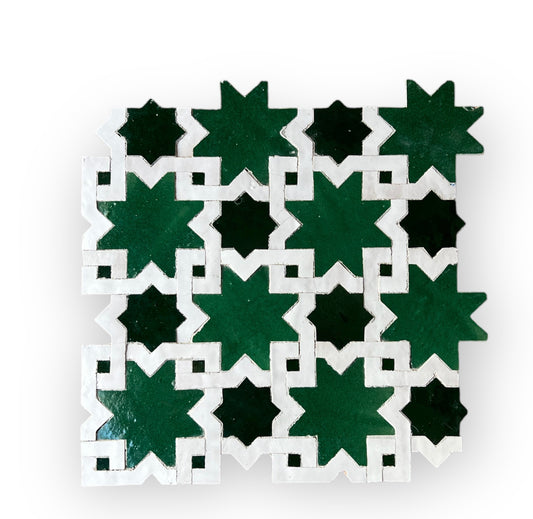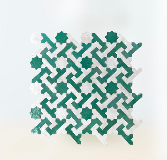 Our favorite client's quote when she was first introduced to our Elaborate Collection "If I'm going for Moroccan tile, why not go all the way and get the full blown Moroccan classic pattern!" Our Elaborate collection is what dazzles our clients, this collection makes an artistic statement in your home and makes it very personal to you. All the patterns in this collection are part of the very classics of Zellige world and are custom made to order, we work with our clients to pick their favorite colors from 45 colors ways and match it with the patterns we see fit in their living space.