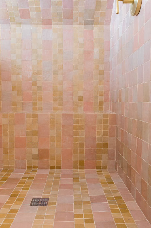 There's always a place for one of these simple, yet elegant types of Zellige Tile. Whether you're looking to upgrade your kitchen backsplash or add some authentic feel and look to your bathroom, our selection of 4x4 or 2x2 Zellige Tile Squares as well as the subway shaped, aka "Bejmat" tiles, always make the space more beautiful.